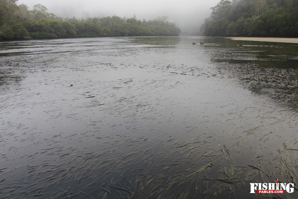 On the river bends, deep banks were undercut against steep rock banks. These pockets of deep water looked to be prime hide-outs for estuary perch on a low tide. I managed a small perch from one of the pools, my first of the season.